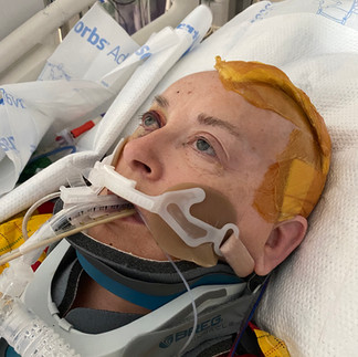 From the first moments after the accident and throughout her recovery, Joy has been not only brave-hearted, but lionhearted. How else would someone live through and strive to recover from: a left SDH subdural hematoma (10mm) w/ 9mm L-R shift, left temporal IPH intraparenchymal hemorrhage, left side SAH subarachnoid hemorrhage, Rt orbital wall & maxillary wall fractures w/ associated sinus hemorrhage, non displaced Rt temporal bone fracture, Rt hemotympanum (bleeding from the ear), Rt open elbow arthrotomy, Rt distal radius fracture, Rt thigh hematoma, Rt 4th rib fracture, possible pulmonary contusion, questionable splenic laceration, total paralysis of the right side of her body including right facial droop, aphasia, apraxia, deafness in her right ear, vertical diplopia, and an upper right quadrant field of vision cut due to permanent brain damage.